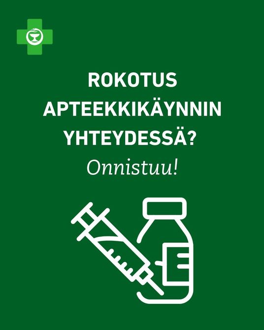Terveyspisteemme tarjoaa lisäksi laajan valikoiman sairaanhoitajan palveluita kuten aikuisten ja lasten rokotuksia, kolesteroliarvojen, CRP (tulehdusarvot), hemoglobiini ja pitkäaikaisen verensokerin mittauksia ilman erillistä lähetettä. Sairaanhoitaja antaa neuvontaa myös liikunta- ja ravitsemusasioissa helposti ja nopeasti. Tämän lisäksi apteekissa palvelee rokotuskoulutettu farmaseutti, joka antaa tarvittaessa aikuisille (ei raskaana oleville) rokotuksia.